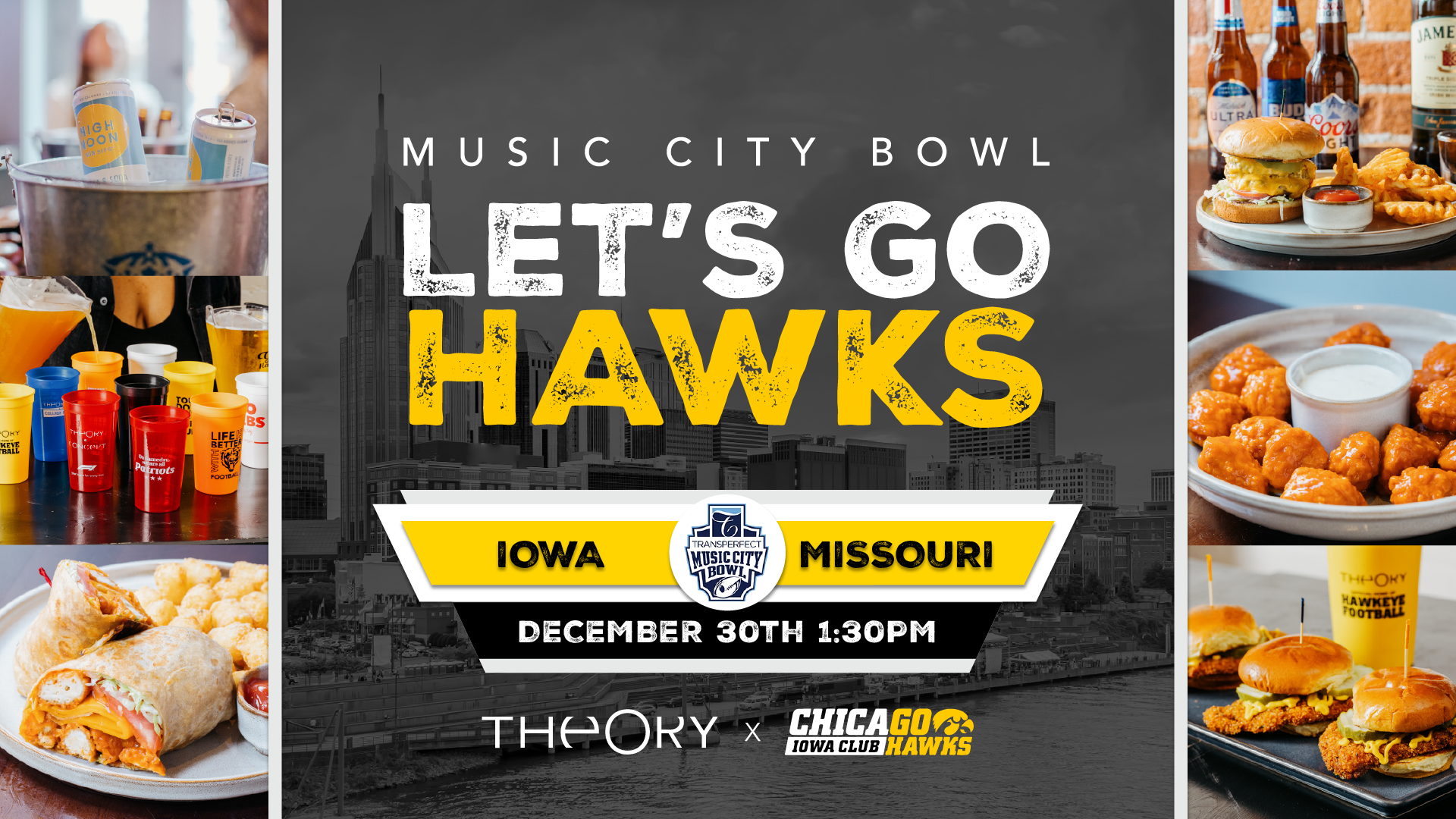 Hawkeye fans, it’s time to close out the year in style! On Saturday, December 30th, at 1:30 PM, the Iowa Hawkeyes take on the Missouri Tigers in the Music City Bowl, and there’s no better place to watch than Theory Sports Bar—the ultimate Iowa sports bar in Chicago!