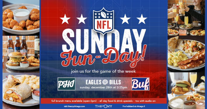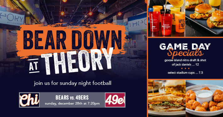 Theory has a life of its own that matches the pulse of the River North neighborhood. Whether it’s grabbing a bite to eat during your lunch break or a gathering with your friends for weekend brunch, we offer the perfect environment for all occasions. We pride ourselves on superior food, service and comfort, all while providing a great view from every seat in the house.