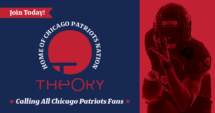 Welcome to you “home away from home” for everything Patriots. Here at Theory, we are a group of loyal Patriots fans that hang out weekly all season long and monthly outside of season for great food, great service, and even better vibes. Join us and the rest of Chicago Patriots Nation in cheering on the Pats every week, and keep an eye on this page to stay up to date with game and specials updates. Go Pats!