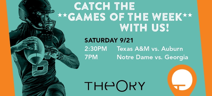 With an unmatchable atmosphere, award-winning food and drinks menus and always a service with a smile, come on into Theory this Saturday to watch all the college football action. Walk on in… we’ll direct you by clicking here.