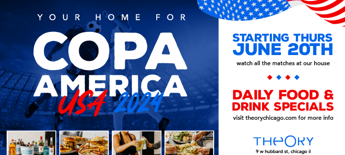 π Prime Location: Conveniently located in the heart of Chicago’s River North, Theory Sports Bar is your go-to destination for all Copa America festivities. With easy access to public transportation and plenty of nearby parking, getting to the action has never been easier!