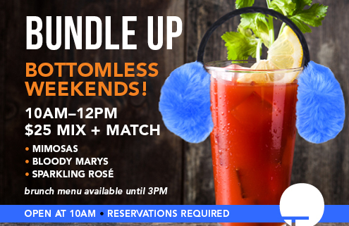 Join us Saturday and Sunday 10AM-3PM for the best brunch in Chicago. PLUS from 10AM–12PM treat yourself to something special – $25 mix + match bottomless mimosas, bloody marys + sparkling rosé!
