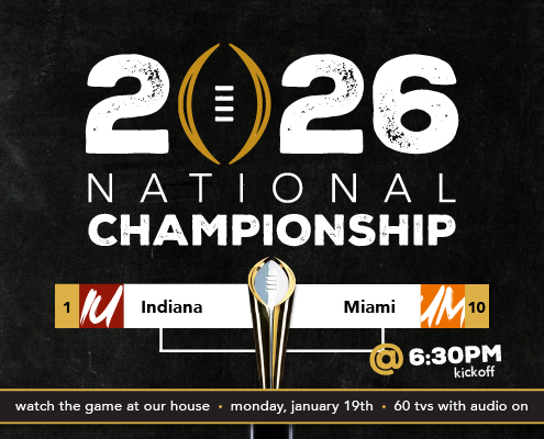 Watch the 2026 National Championship at our house – where college football’s biggest moments are meant to be experienced. 🏆🏈