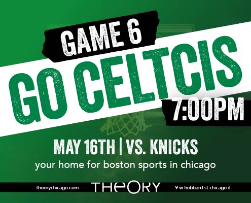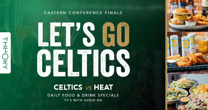 Boston fans! Welcome to Theory, the #1 place to be all season long to watch the Celtics. Join a group of loyal Boston fans to cheer on your favorite basketball team with great food, excellent service, and awesome vibes. Keep an eye on this page all season for game and specials updates. Let’s go Celtics!