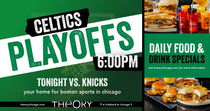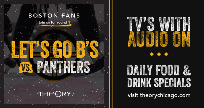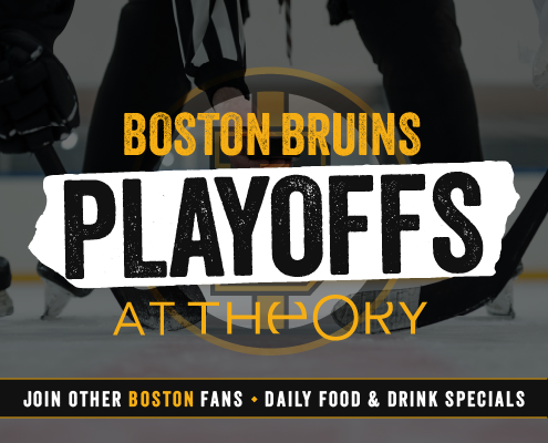 Boston fans! Welcome to Theory, the #1 place to be all season long to watch the Bruins. Join a group of loyal Boston fans to cheer on your favorite hockey team with great food, excellent service, and awesome vibes. Keep an eye on this page all season for game and specials updates. Let’s go Bruins!