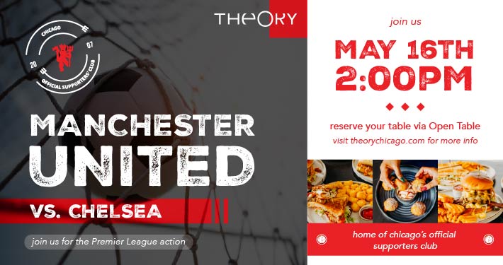 Glory Glory Man United! Enjoy every Manchester United game at Theory.