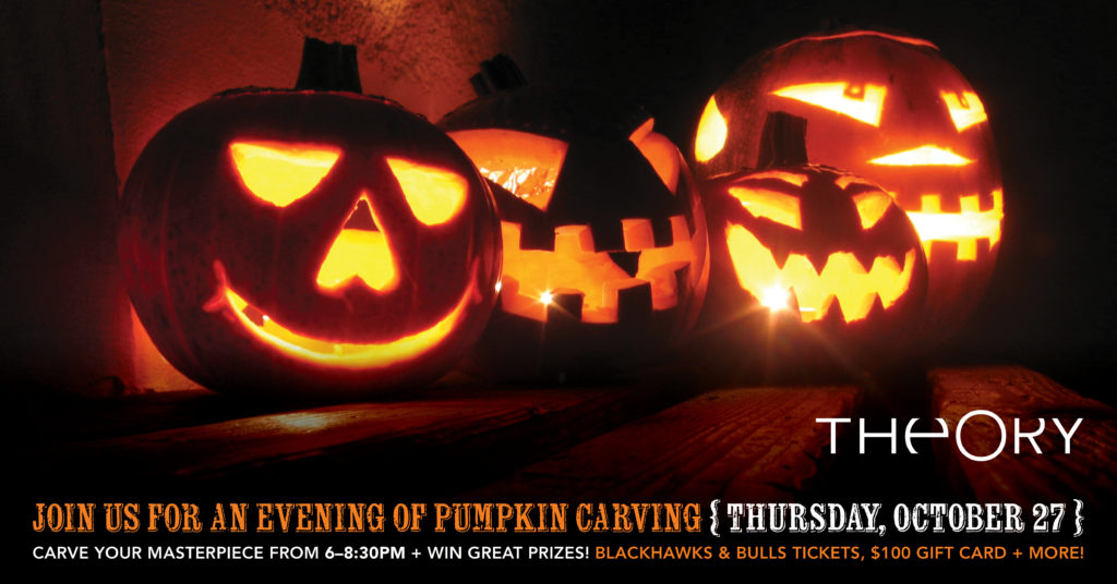 Prizes include Blackhawks and Bulls tickets, a $100 gift card and more. Carve your masterpiece from 6-8:30PM and submit to win one of our amazing prizes. Theory is an upscale sports lounge and restaurant located at 9 W Hubbard in the River North area of downtown Chicago. Call (312) 644-0004 for reservations today.