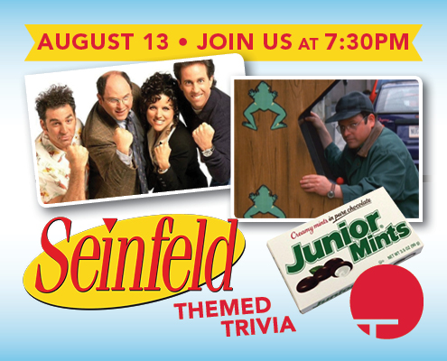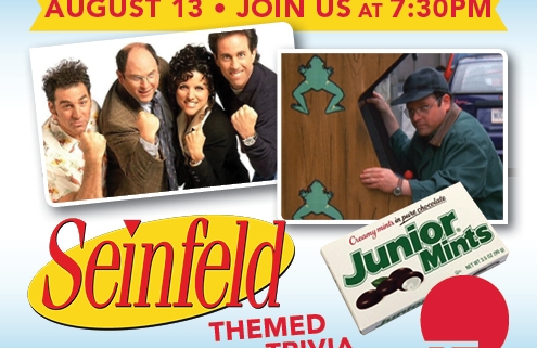 Think you’re Seinfeld’s #1 fan?? Come and show off your knowledge Tuesday August 13th and win great prizes!